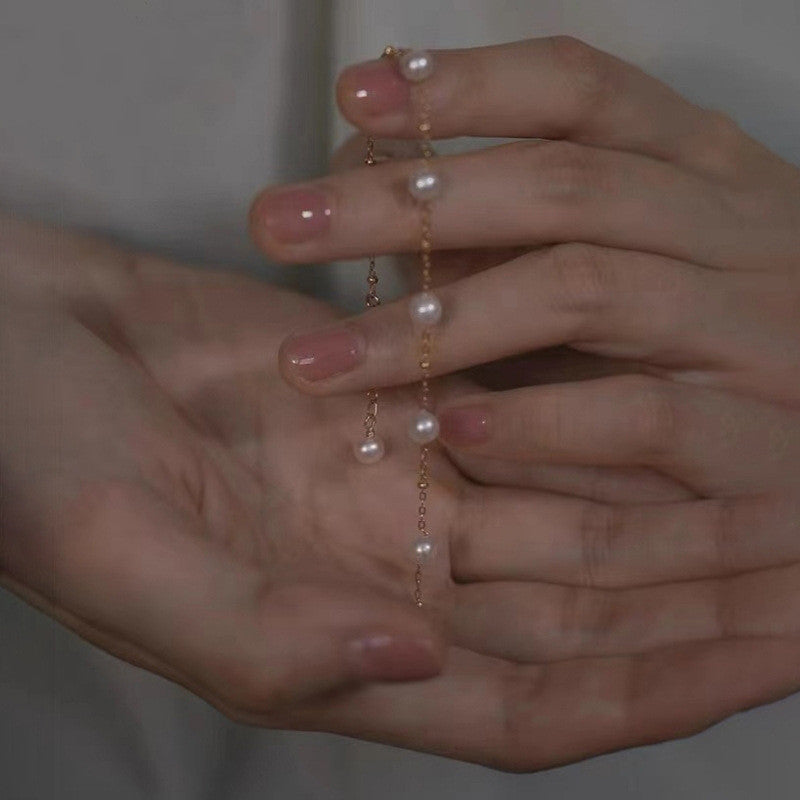 18K Gold Starry Pearl Bracelet – Delicate Minimalist Chain