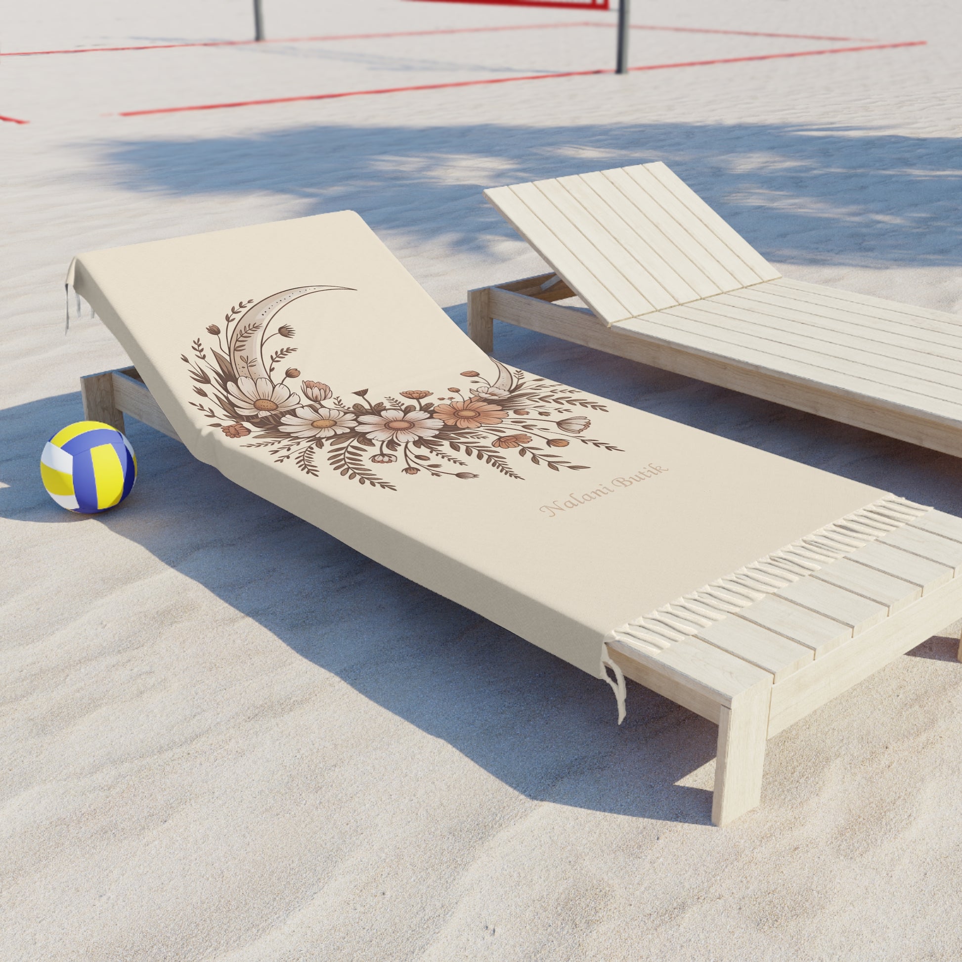 Boho Beach Towel — Crescent Moon Floral Fringe Cotton Beach Towel