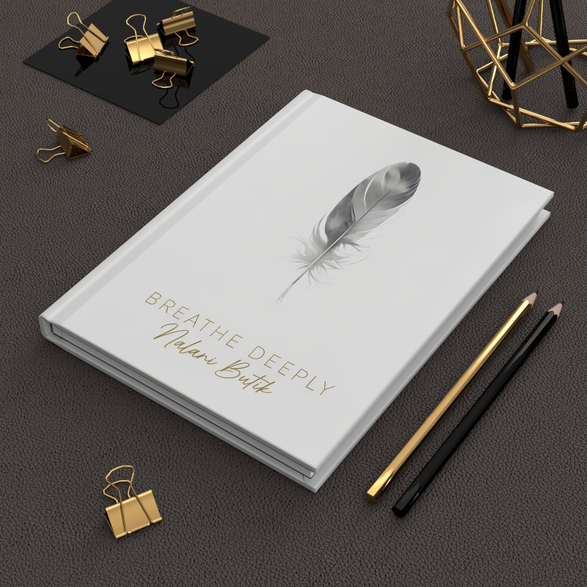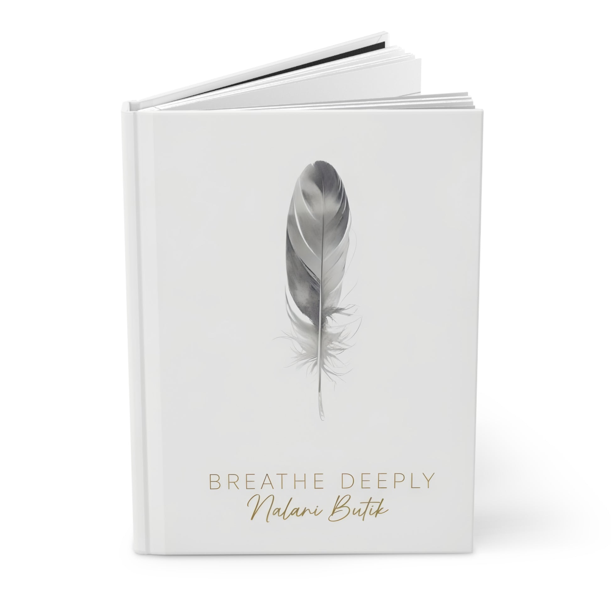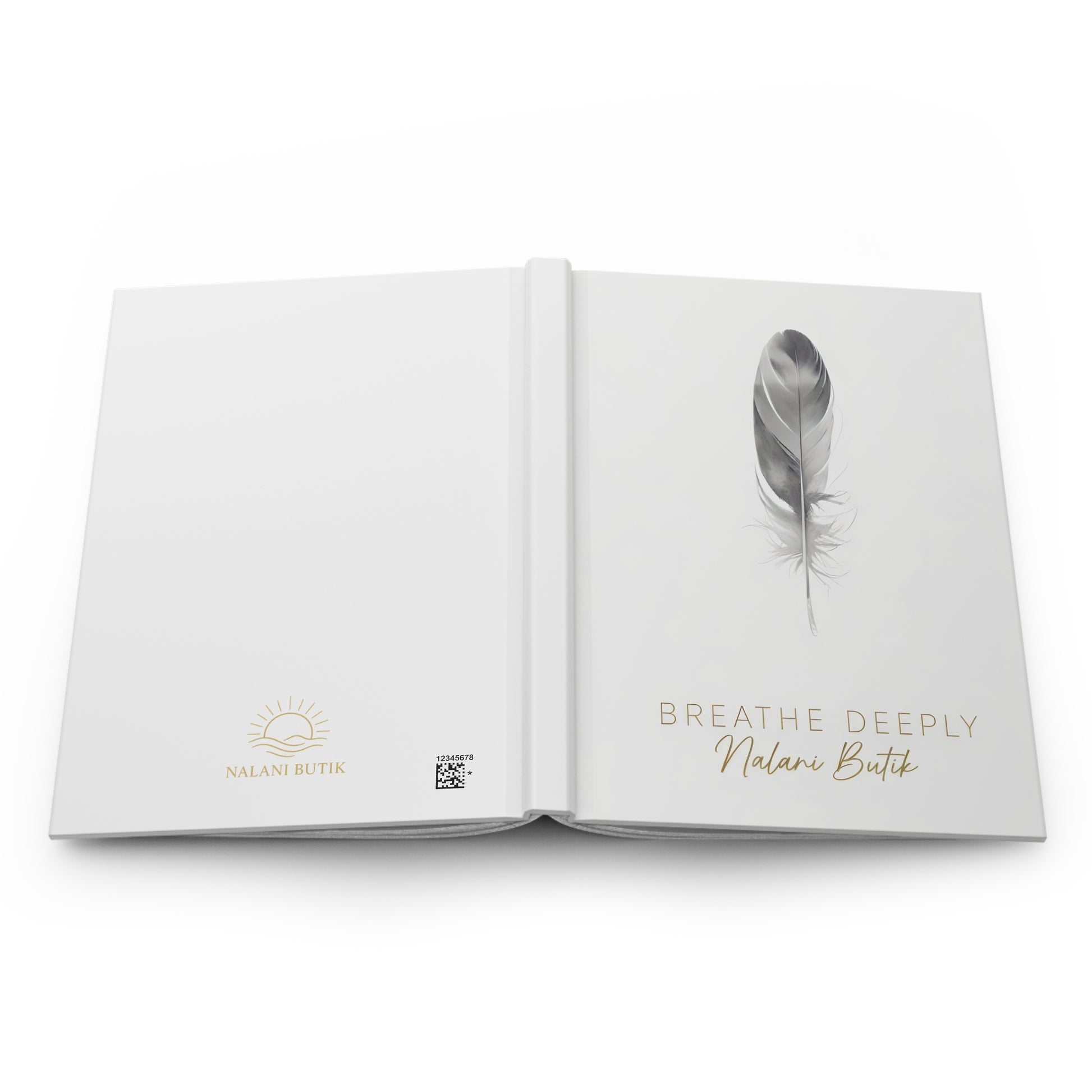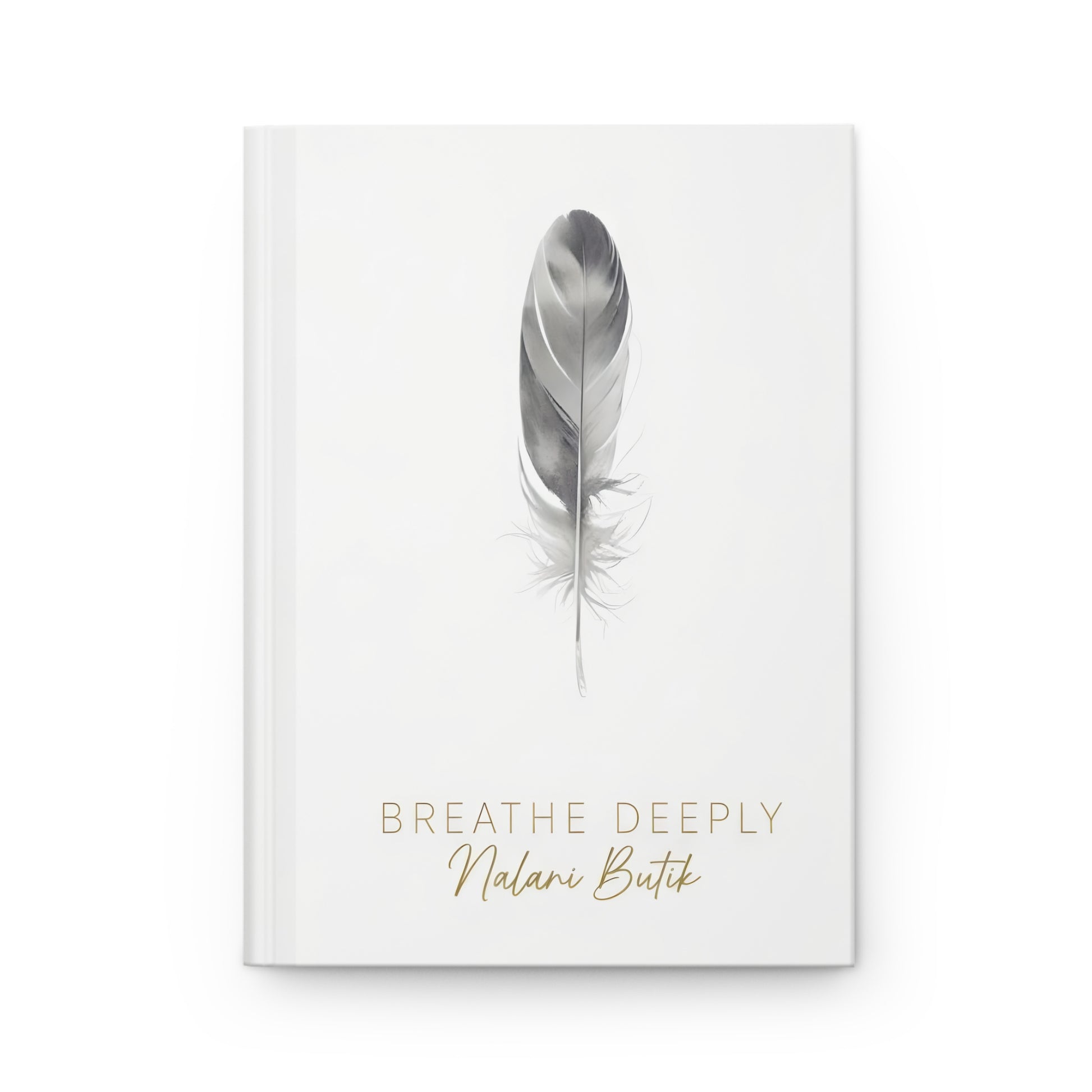 Breathe Deeple - Hardcover matte journal A calm, minimalist journal designed to help you slow down, reflect, and reconnect with your inner world. Featuring Nalani’s signature feather artwork and a soft matte finish, this hardcover notebook brings a sense of ease and intention to your everyday writing.