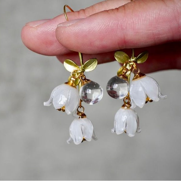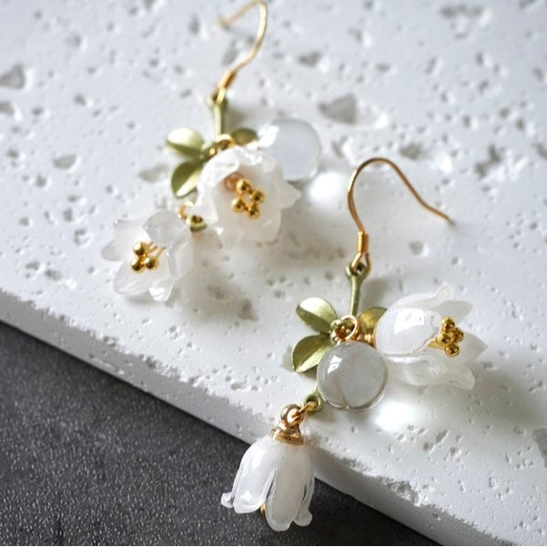 Dew Lily Handmade 925 Sterling Silver Floral Drop Earrings – Elegant Botanical Design