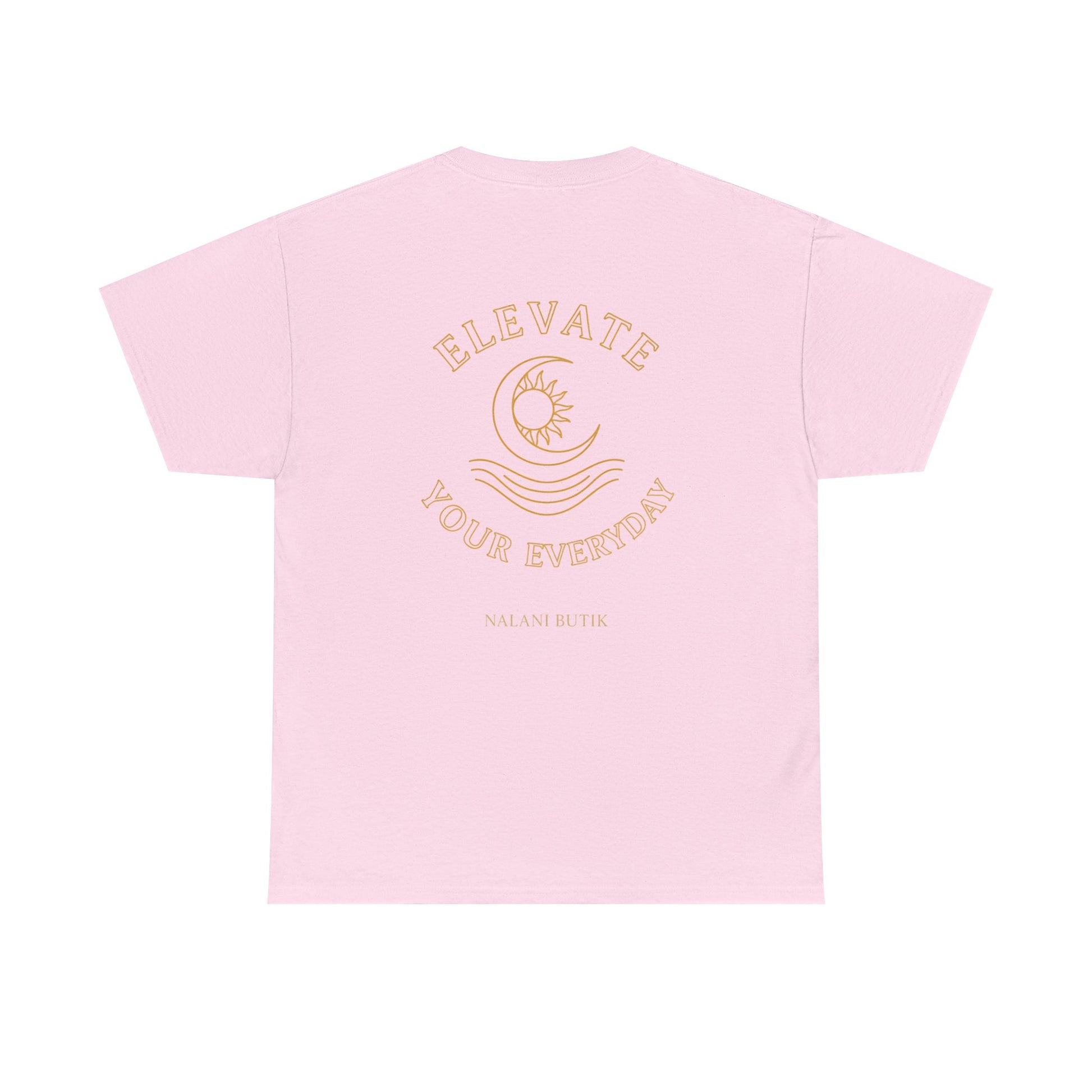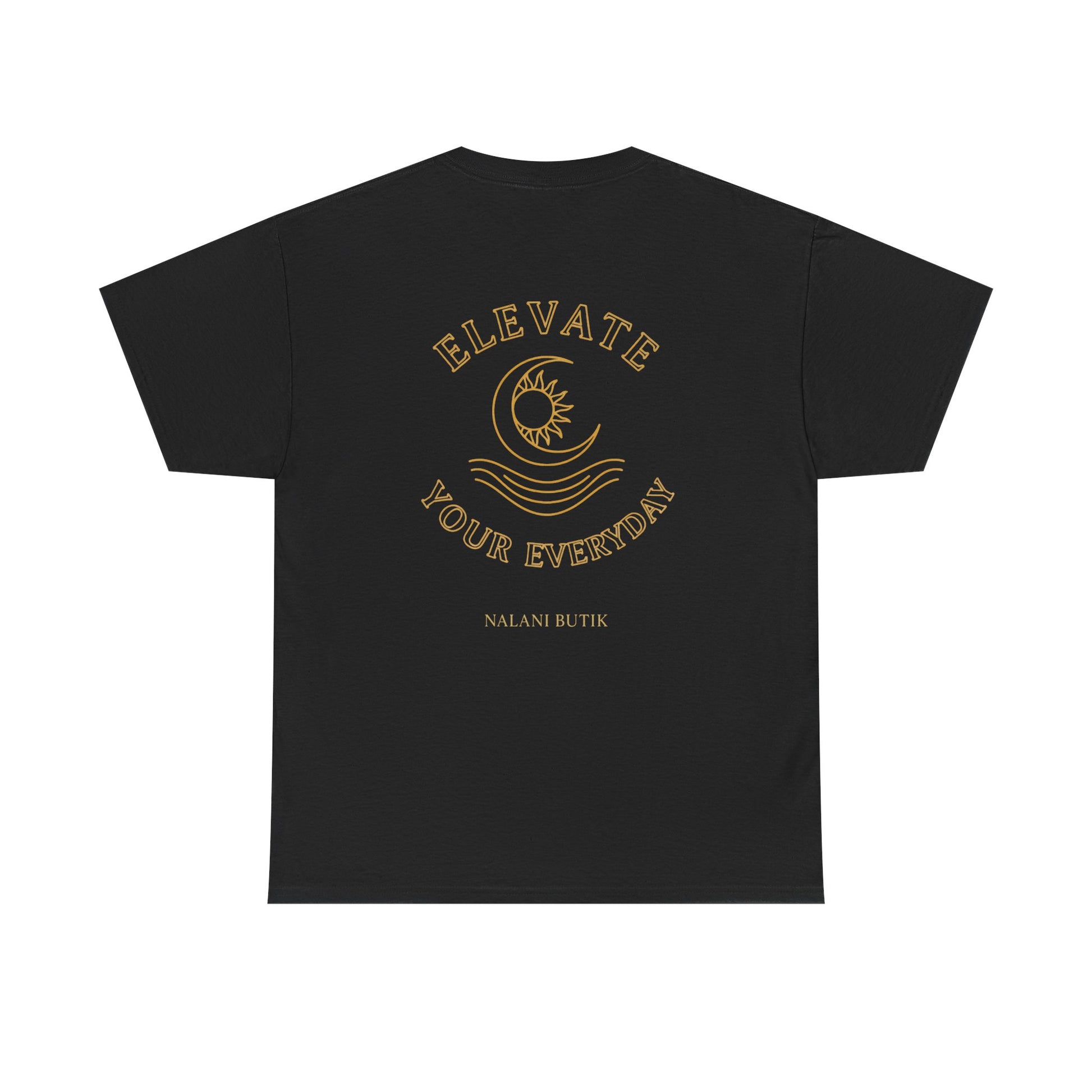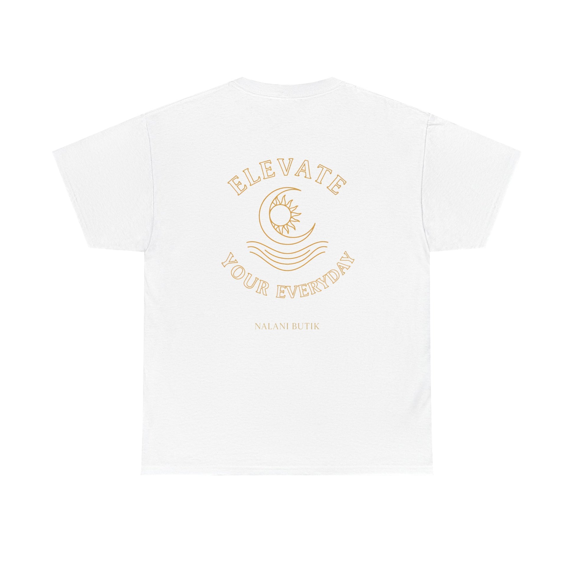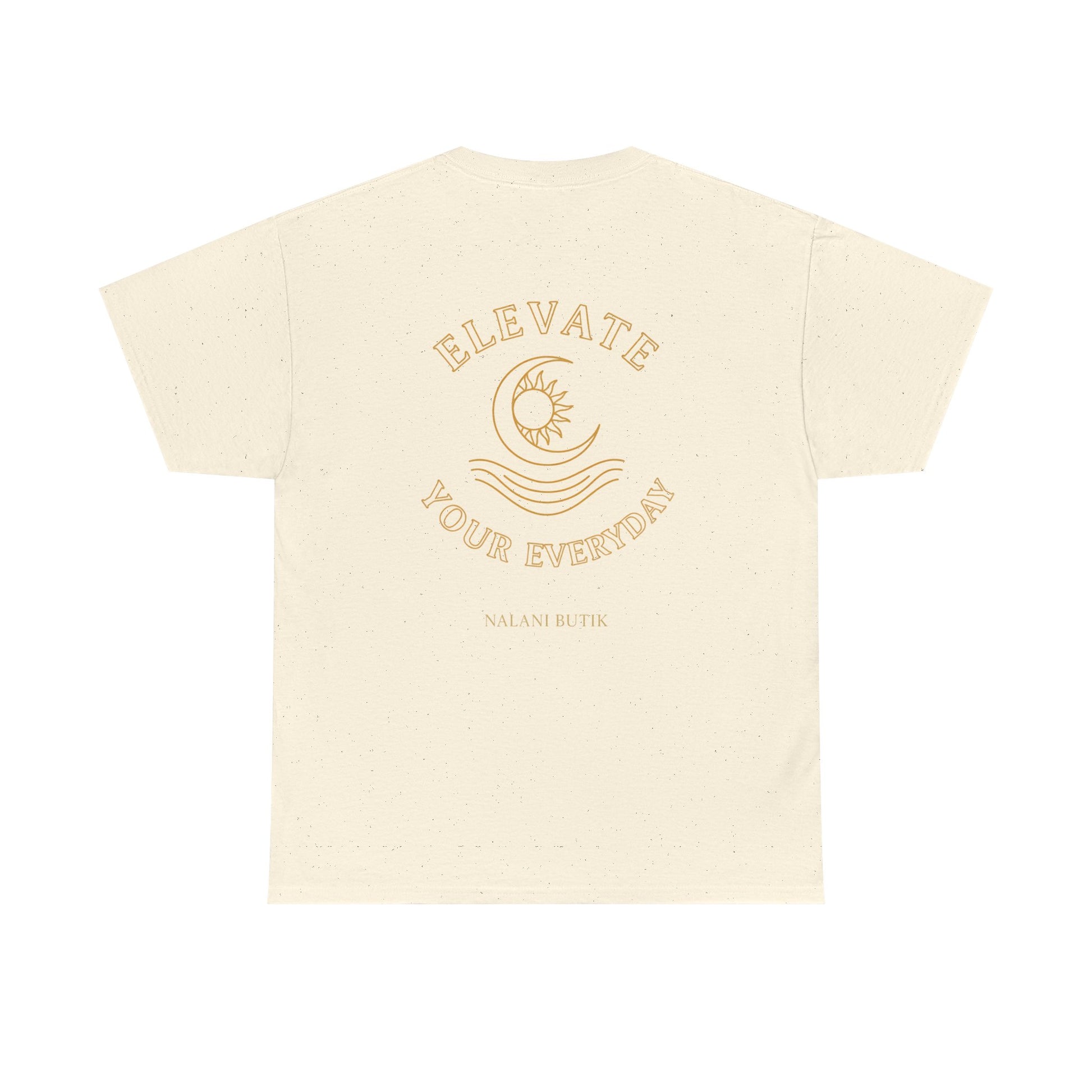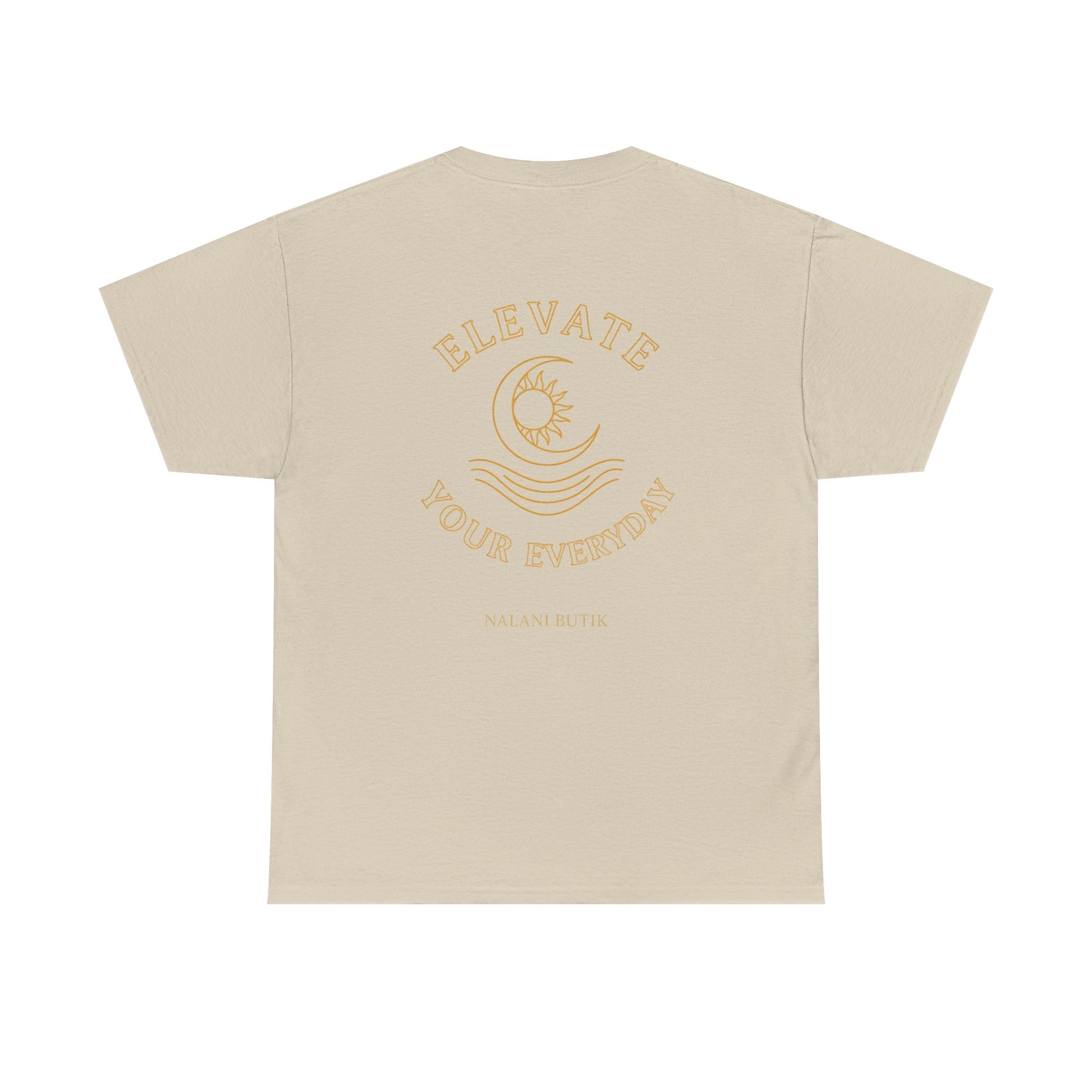 Soft, breathable, and made for everyday movement — this relaxed-fit tee brings a calm, sunlit vibe to your wardrobe. Lightweight cotton sits gently against the skin while a subtle back graphic — a rising sun, crescent moon and flowing lines — whispers a reminder to lift your daily rhythm. It layers easily under jackets or stands alone for slow mornings, walks by the water, or studio sessions where comfort matters as much as intention. The look feels simple and intentional: quiet colors, clean lines, and a wearable silhouette that moves with your day.
