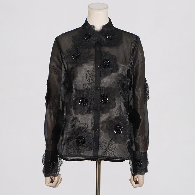Embroidered Organza Flower Shirt – Soft Elegant Layer