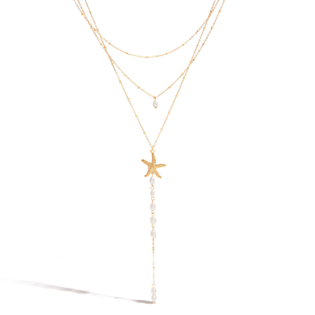 Golden Tides Starfish Pearl Drop Necklace