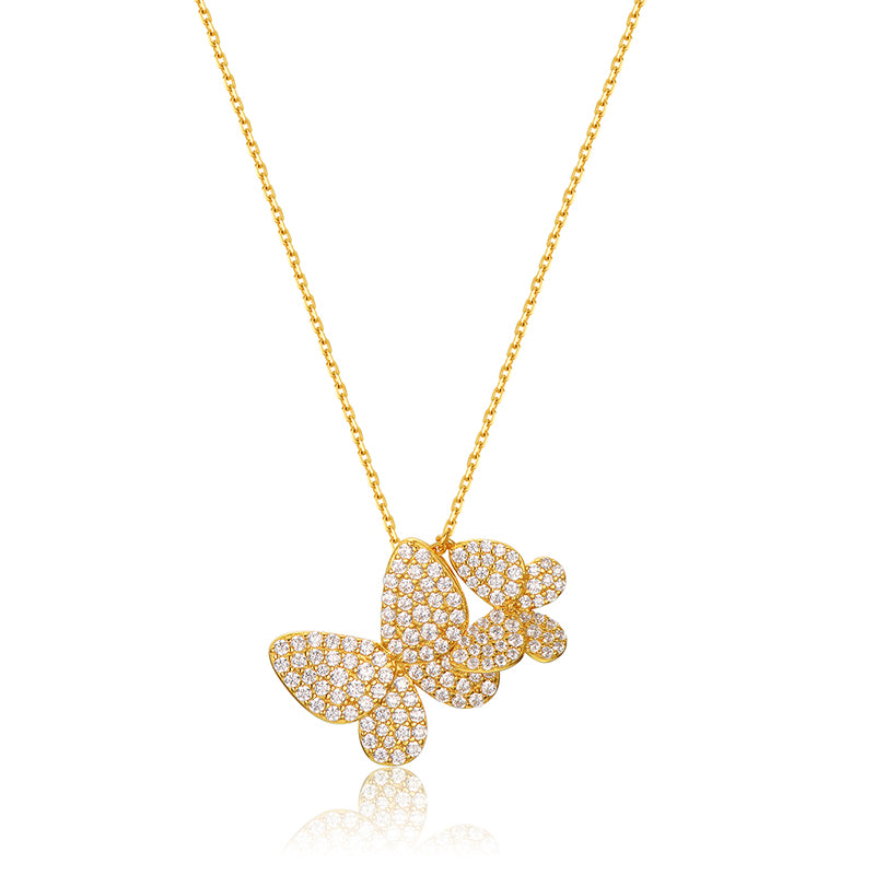 Delicate, dreamy, and full of feminine charm — this retro-inspired butterfly necklace captures the soft glow of hand-set zircon stones on a sleek gold chain. Designed to rest beautifully along the collarbone, it adds a touch of light and elegance to any outfit, whether layered or worn as a subtle statement piece.