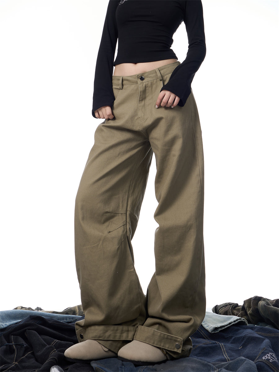 Crafted from a breathable cotton fabric with a natural, linen-inspired texture, these pants feature a straight-leg silhouette and a natural waist for effortless movement. The warm coffee tone adds depth and versatility, making them easy to style with soft knits, simple tops, and layered essentials throughout the seasons.