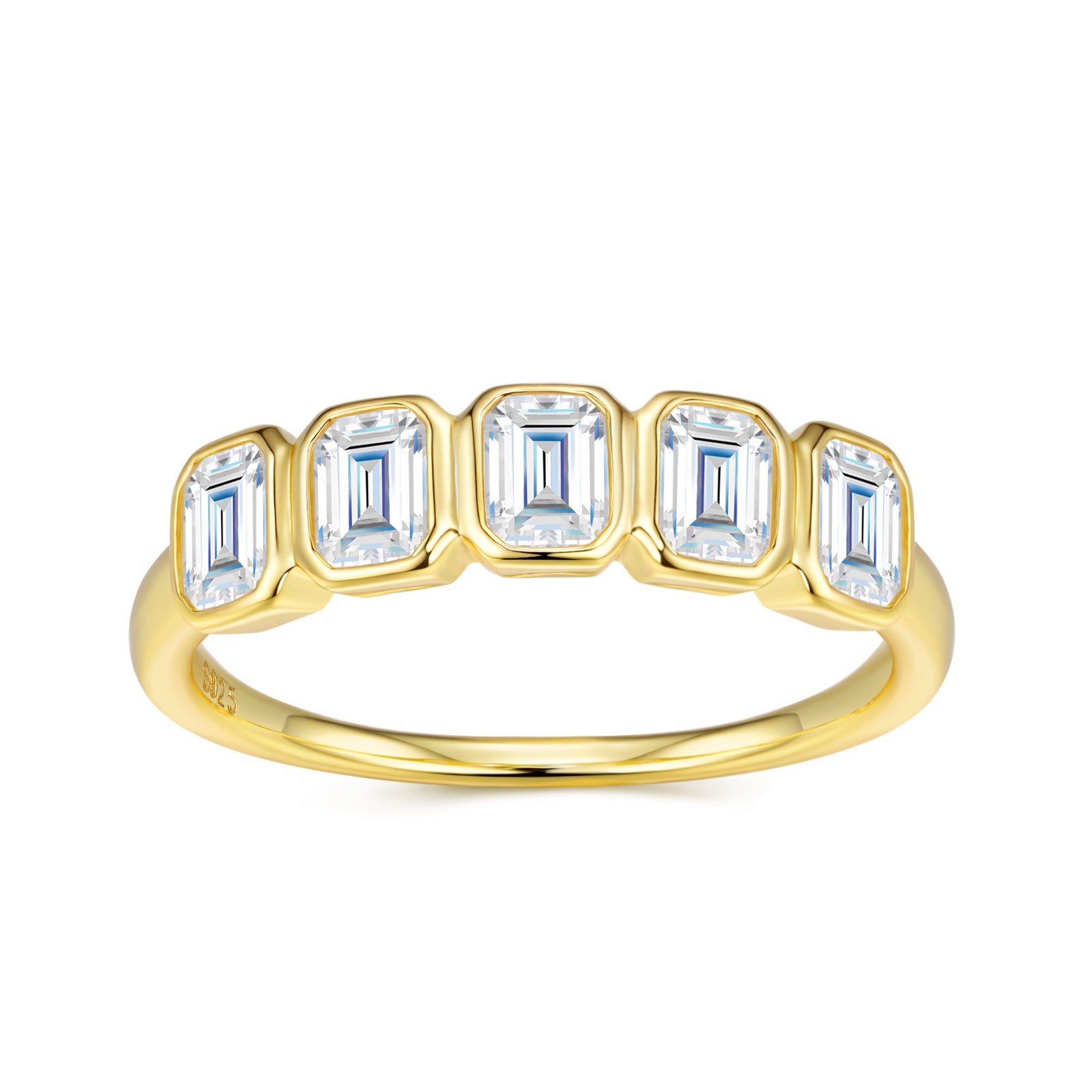- Stones: 5 GRA-certified moissanite baguettes