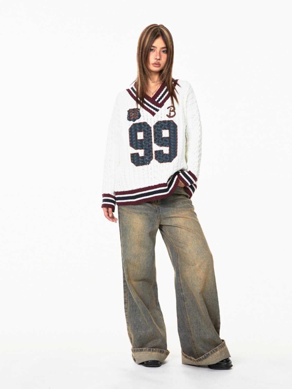 This relaxed jacquard sweater features a loose, easy silhouette with soft structure and subtle graphic detailing that adds character without feeling loud. The long sleeves and comfortable fit make it perfect for autumn and winter days when comfort and ease come first.