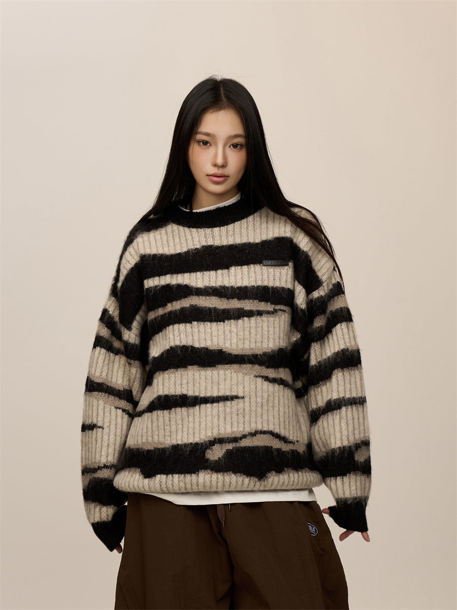 This retro-inspired striped knit sweater brings effortless cool to your everyday wardrobe. Designed with a relaxed, oversized fit and classic round neckline, it’s the perfect balance of comfort and statement style.