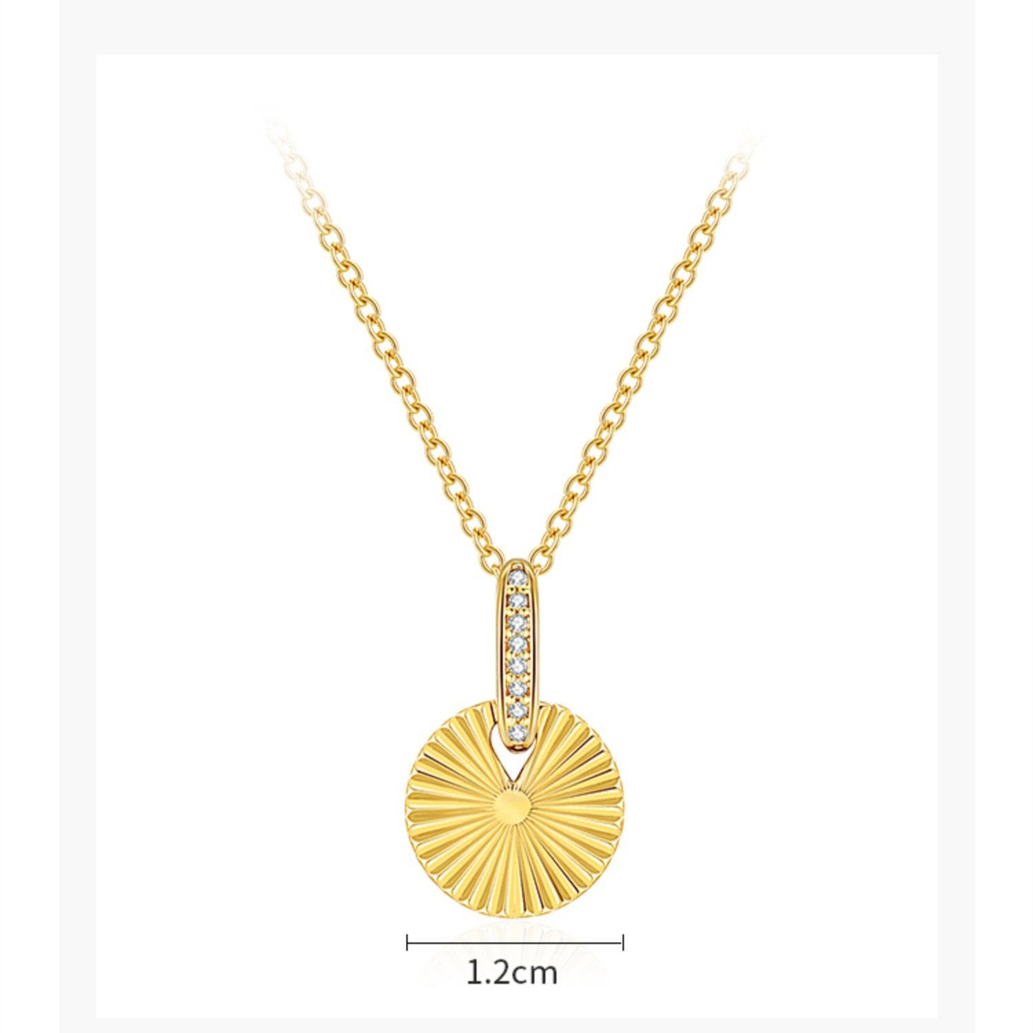 A softly radiant pendant with a touch of retro charm — this vintage-inspired round medallion necklace brings effortless elegance to every moment. The warm gold tone paired with delicate zircon detailing creates a gentle shimmer that elevates both everyday outfits and more polished evening looks.